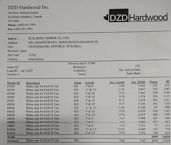 폭염 날씨속에 북미에서 수입한 화이트 애쉬 제재목 하역 작업을 진행 하였으며 회원님들께 저렴한 가격으로 판매 할 예정 입니다.규격은 하단 Packing List 참고 해 주시면 감사하겠습니다.단가 및 구입 문의는 담당자에게 연락 주시면 빠른 피드백을 받아보실 수 있으십니다.