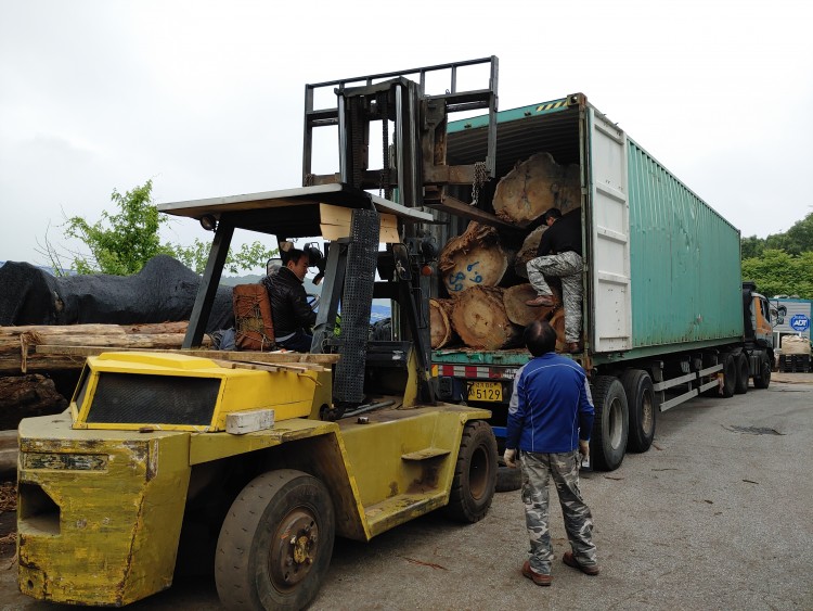 호주산 캄포 원목 우드슬랩용 1컨테이너 입고 완료^^